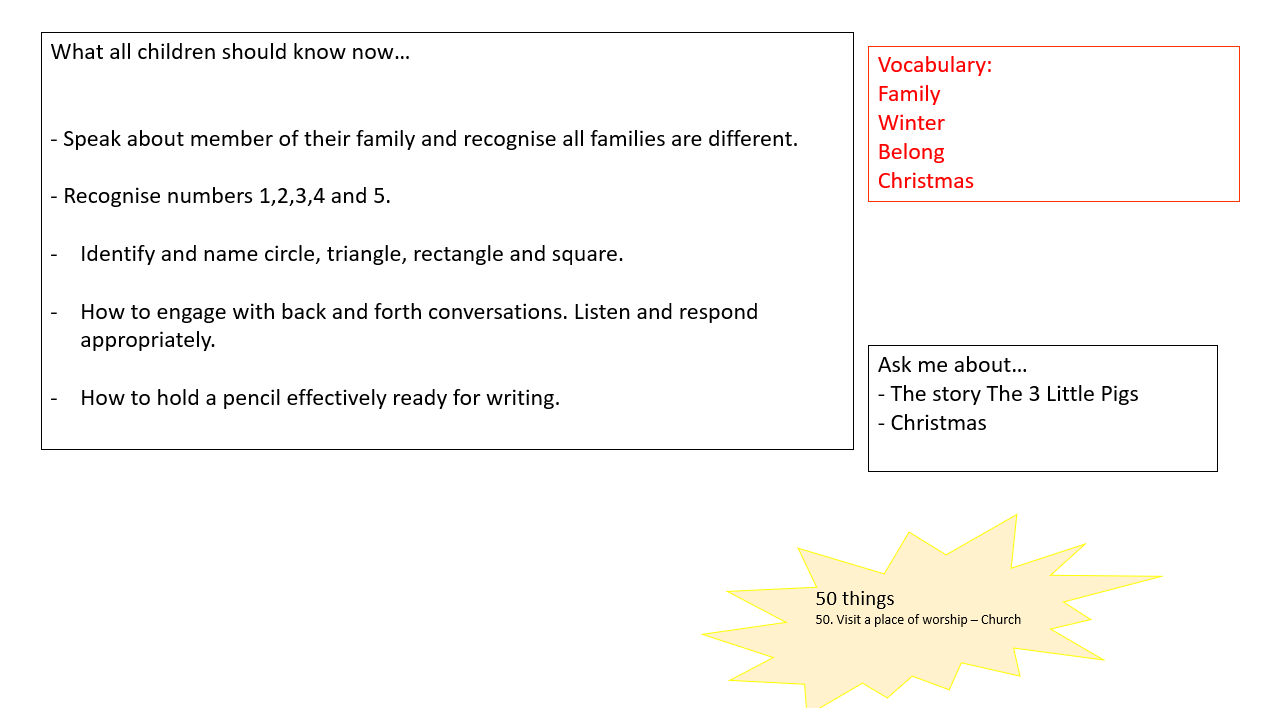 Across the year, children explore rich themes—from celebrations, community and seasonal change, to lifecycles, habitats, helping roles and global awareness. Each topic is designed to broaden vocabulary, strengthen understanding and deepen curiosity. Daily opportunities for high‑quality interaction, purposeful play and direct teaching ensure that all children access the full curriculum and develop confidence, independence, resilience and a sense of belonging. Research underscores the value of clear, focused early curricula that emphasise essential content and avoid overloading young learners, which is why every element of our offer is planned with intention and clarity.